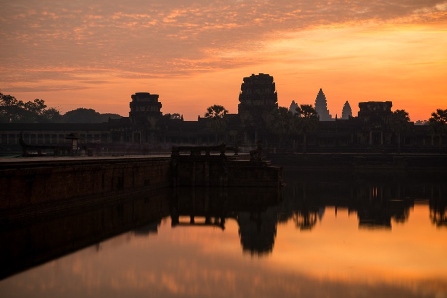 Sunrise over Moat, Angkor Wat, Siem Reap, Cambodia – Nikon D800E with 24-70mm, 30 Sec at F/14, ISO50 with ND 0.6 Hard Grad and 6 Stop Neutral Density Filters.