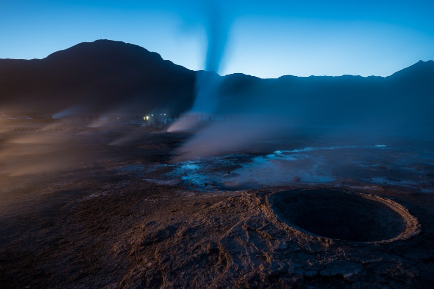 El Tatio Geysers before dawn, Atacama Desert, El Norte Grande, Chile