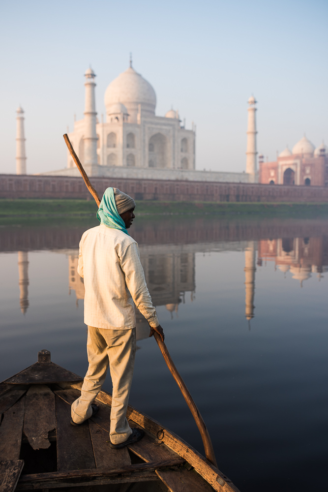 Dawn on the Taj Mahal from Yamuna River, Agra, Uttar Pradesh, India