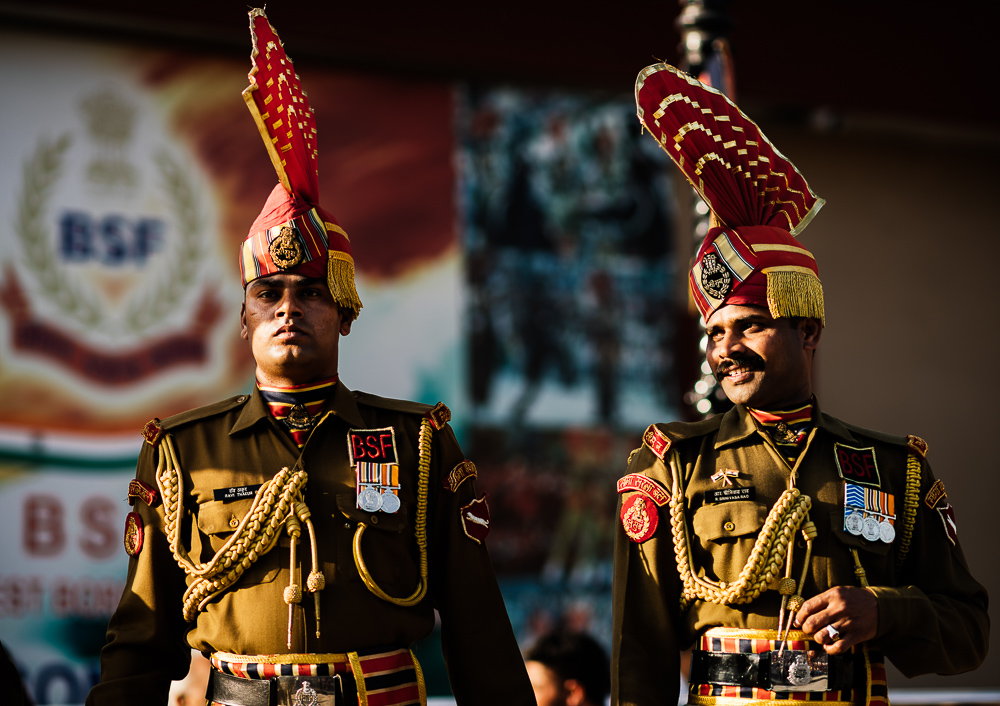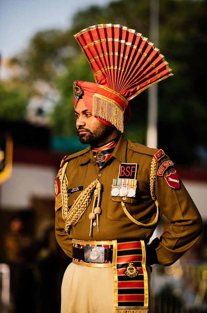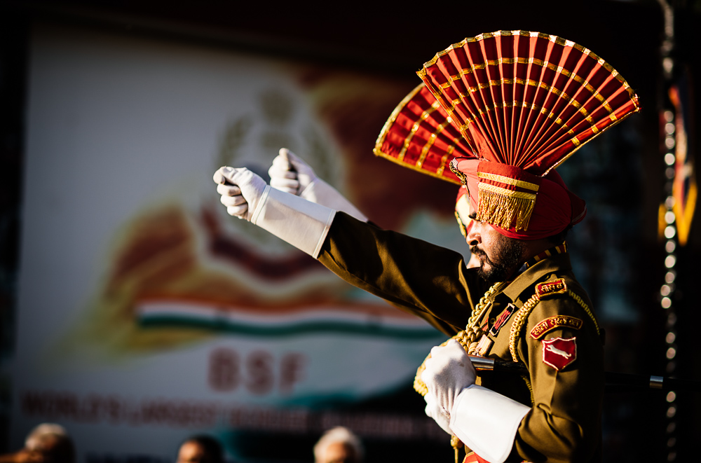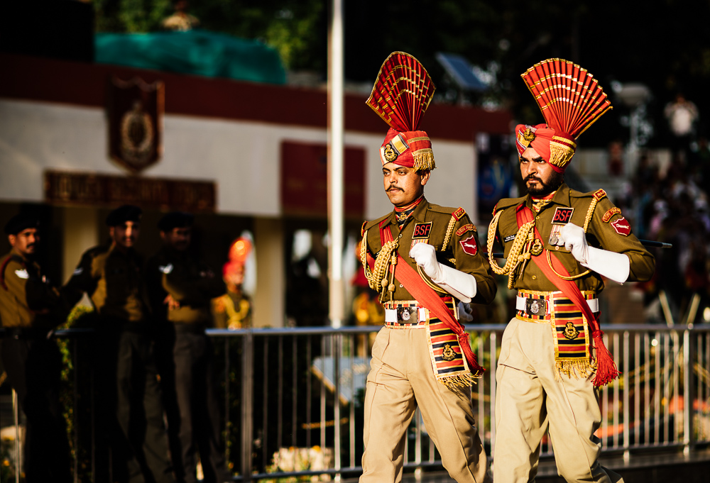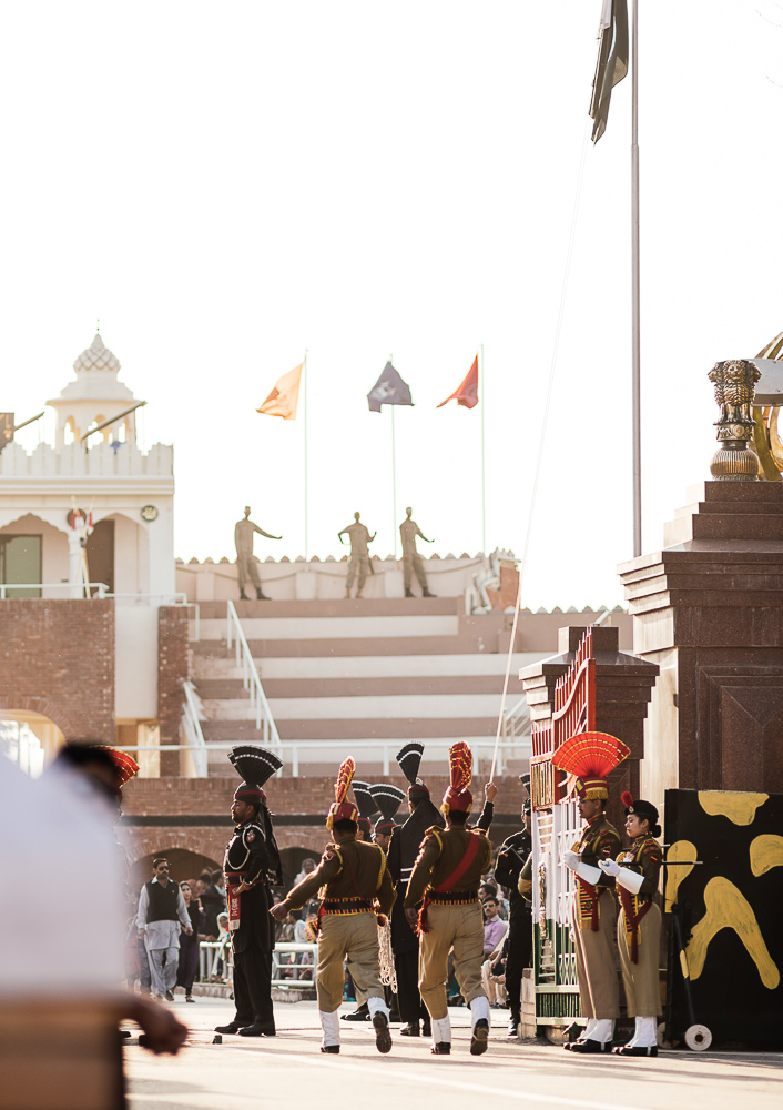 Since 1959 the Indian Border Security Force and the Pakistan Rangers have carried out a flag lowering ceremony to mark the end of each day when the border gate between the two countries slams shut. Guards both from both countries perform a goose stepping routine to the cheers of stands full of patriotic locals and tourists. I went through more security checks than at an airport (4!), the extra checks are probably since a bomb attack a few years ago sadly killed 60 spectators and injured many more on the Pakistan side of the border.