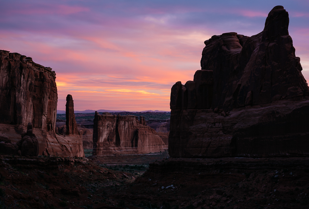 Park Avenue at dawn, Arches National Park, Utah, USA