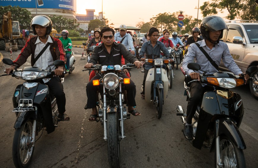 View from Remork-Moto of traffic, Phnom Penh, Cambodia